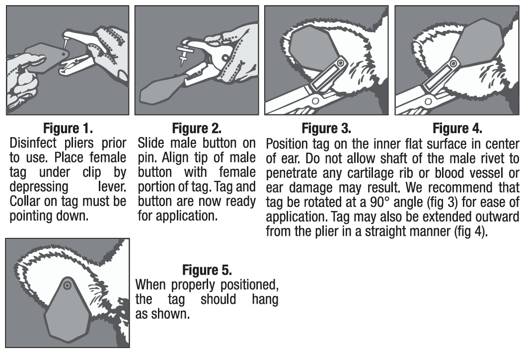 - For adequate control of horn flies, attach one tag per animal. For optimum control of horn flies, control of ear ticks, and as an aid in the control of face flies, lice, stable flies and house flies, attach one tag in each ear(two per animal). Replace as necessary. Calves less than 3 months of age should not be tagged as ear damage may result. REMOVE TAG PRIOR TO SLAUGHTER.
