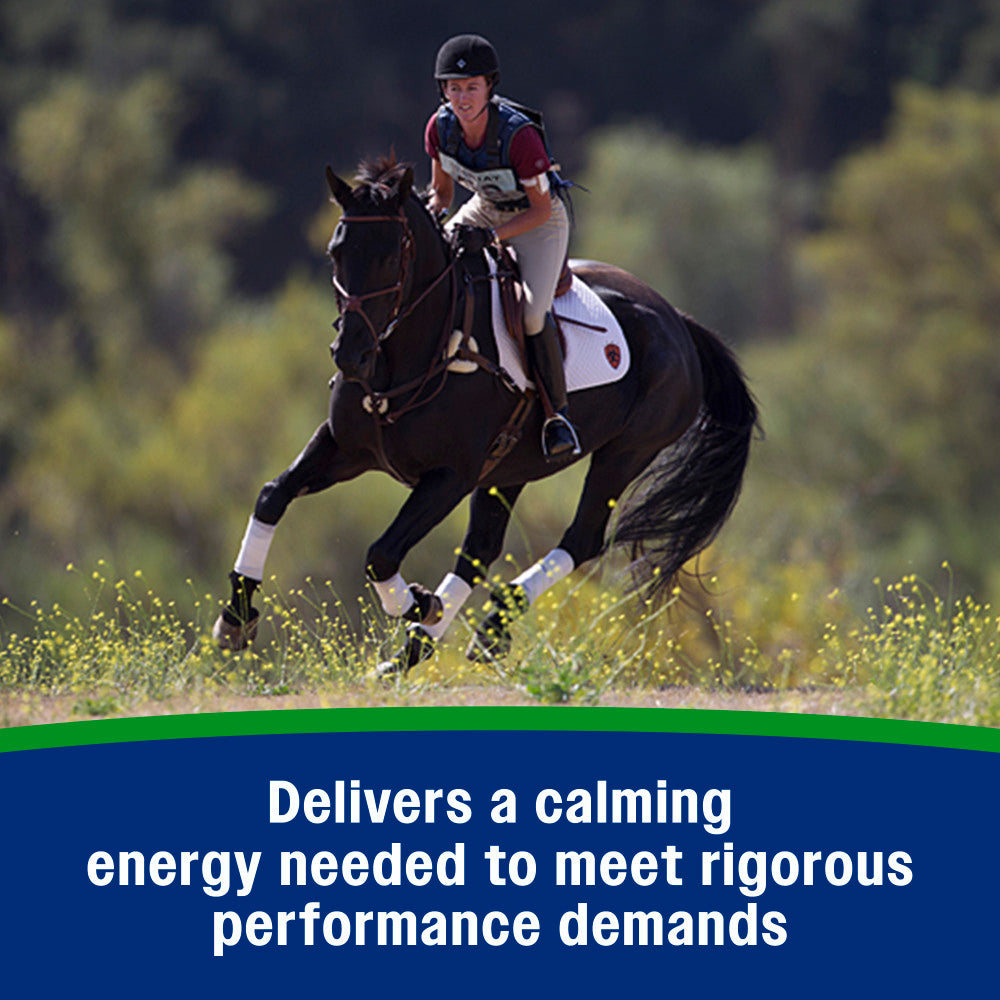 - DELIVERS A CALMING ENERGY to help horses reach and maintain rigorous performance demands.