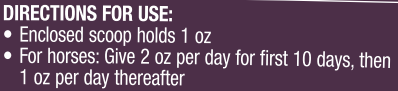 For the first 5 consecutive days, feed 2 oz per day (loading dose). (Based on an 1100 lb. adult horse—feed more for larger horses and less for smaller horses.)