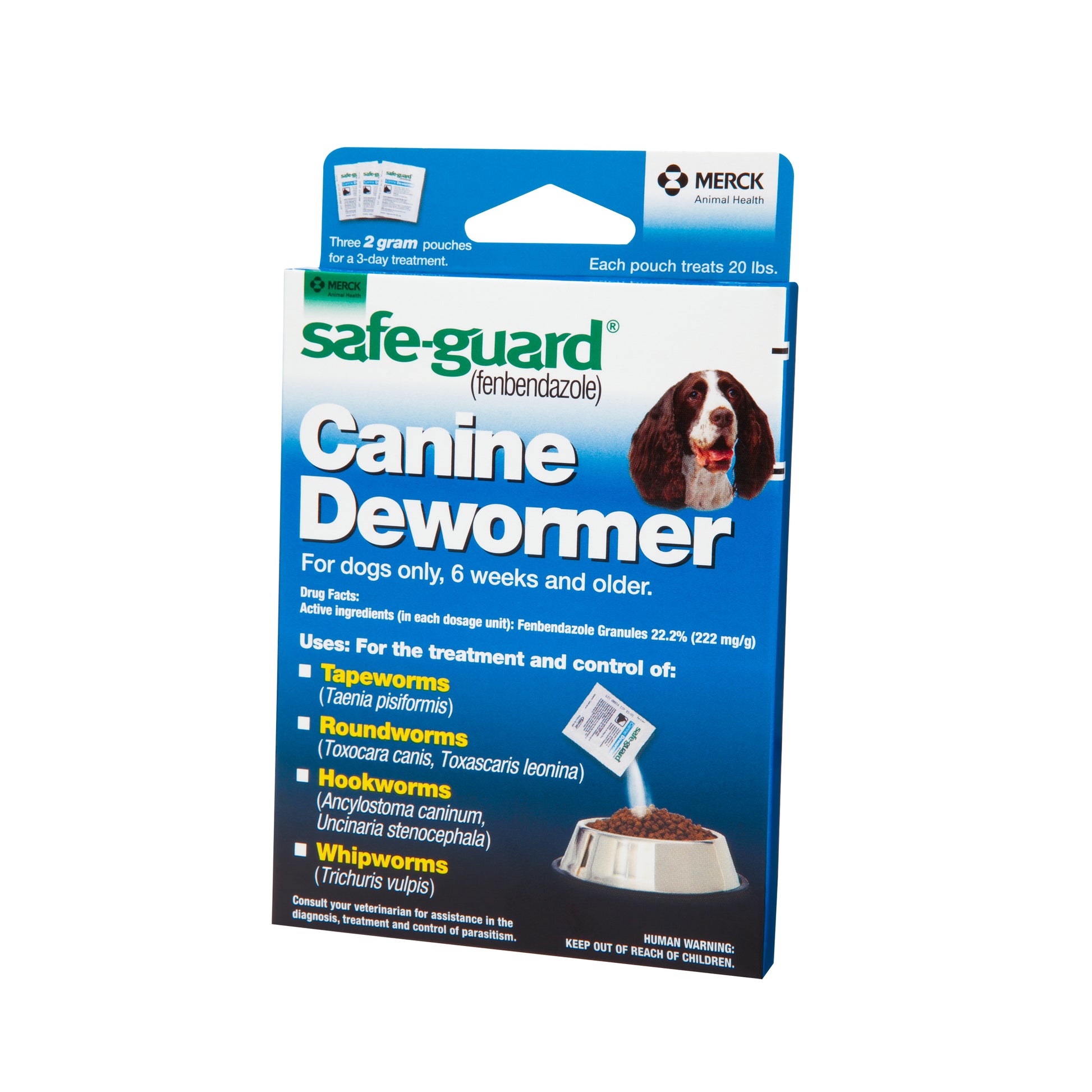 Safeguard (Fenbendazole 22.2%) canine dewormer is for the treatment and control of Roundworms (Toxocara canis, Toxascaris leonina), Hookworms (Ancylostoma caninum, Uncinaria stenocephala), Tapeworms (Taenia pisiformis), and Whipworms (Trichuris vulpis).