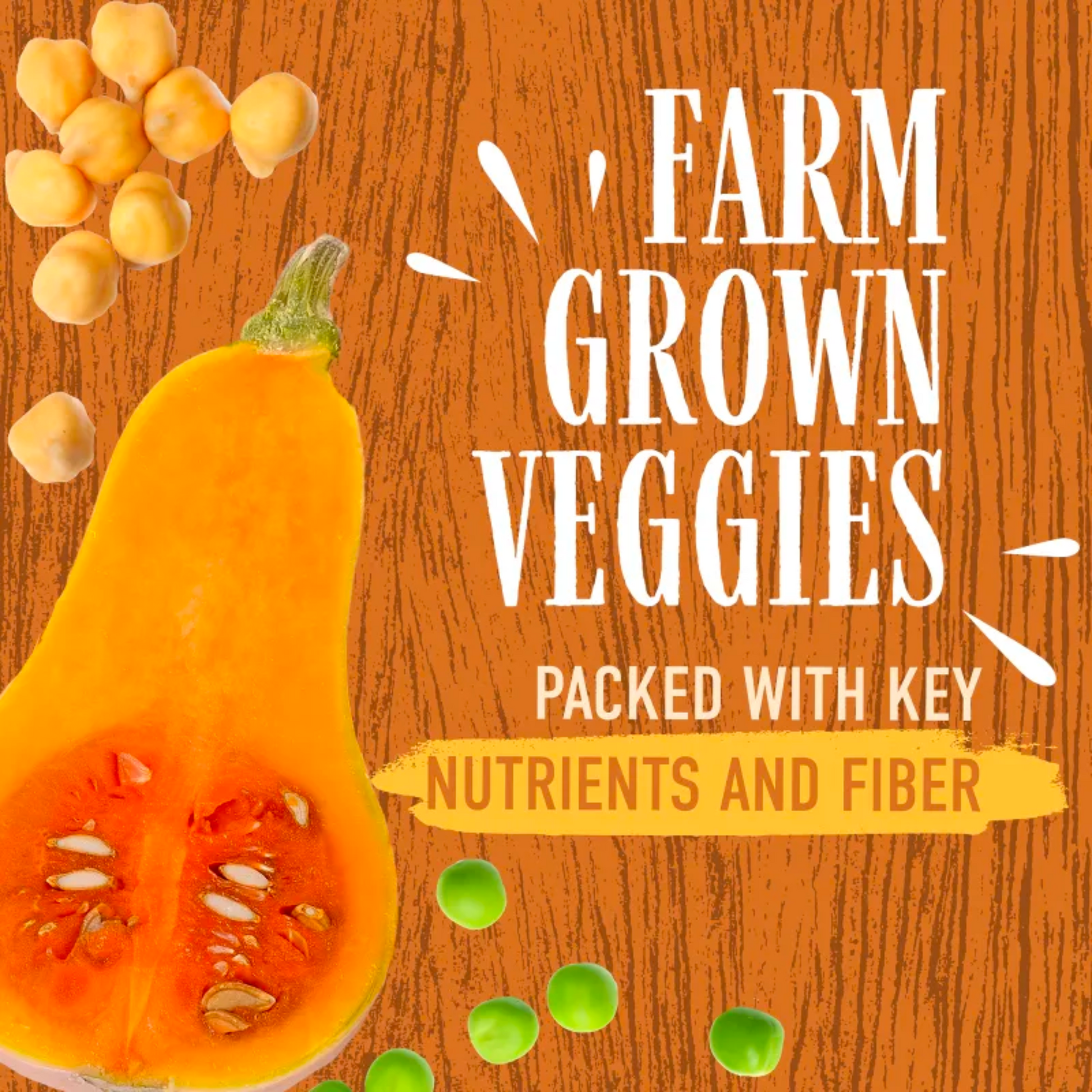 Chicken Meal, Peas, Coconut Glycerin, Pea Protein, Pea Starch, Chickpeas, Egg, Gelatin, Chicken Fat (Preserved with Mixed Tocopherols), Butternut Squash, Sodium Bisulfate, Natural Flavors, Salt, Potassium Sorbate (Preservative), Natural Smoke Flavor.